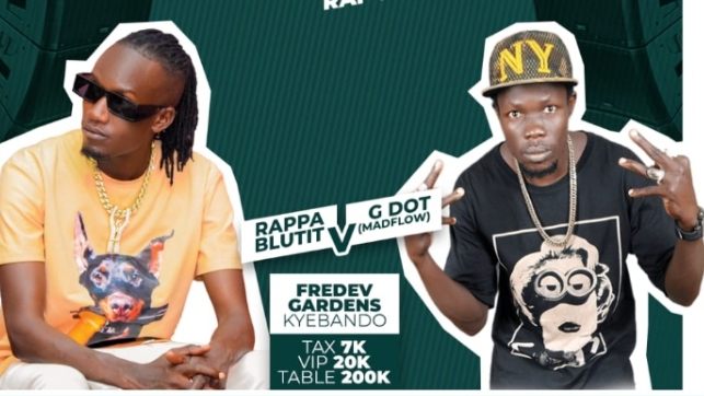 In a battle doubled as Arua V's Madi, Arua will be represented by the poetic gangster 𝐑𝐚𝐩𝐩𝐞𝐫 𝐛𝐥𝐮𝐭𝐢𝐭 meanwhile Madi will be represented by the Hardcore rapper 𝐆 𝐃𝐨𝐭 this Saturday at Fredev gardens.