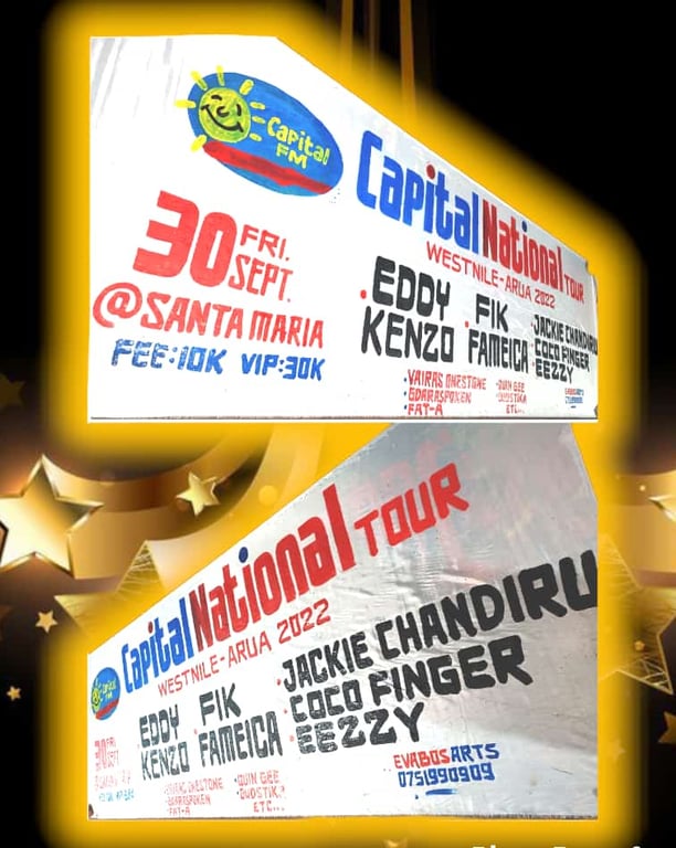 According to reliable sources, the Event shall be headlined by big acts like Eddy Kenzo, Fik Fameica, Jackie Chandiru, Coco Finger, Ezzy and West Nile Artists like Quin Gee, Vairas, Gbaraspoken, Fat A and also feature Capital FM's vibrant presenters like Gaetano and Lucky, Flavia, Levy and music by DJ Wills.