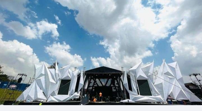 The gigantic stage set at the legendary Singer Jose chameleon's highly anticipated gwanga muje concert at lugogo cricket oval has been dismantled by the heavy down pour and strong wind.