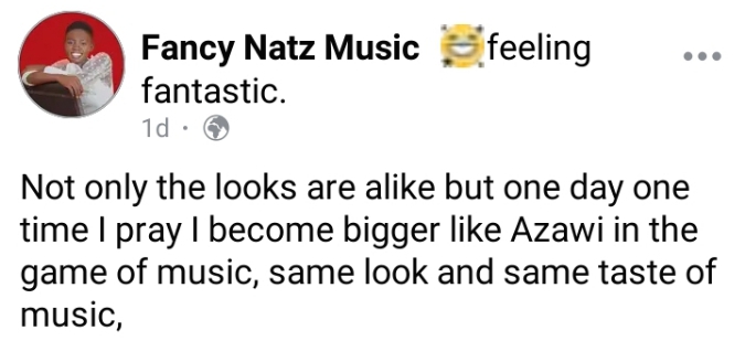 It all seems like 𝒇𝒂𝒏𝒄𝒚 𝒏𝒂𝒕𝒛 has always being a secret admirer and huge fan of the swangz avenue's sensentional Singer, songwriter and producer 𝑨𝒛𝒂𝒘𝒊 following her Facebook post.