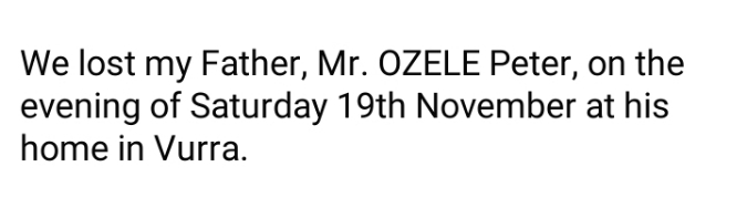 In a cold nervous post on Facebook, the industrious hip-hoper confirmed to the public the death of his father, Mr 𝐎𝐳𝐞𝐥𝐞 𝐩𝐞𝐭𝐞𝐫 which occured on the evening of Saturday 19th of November 2022.