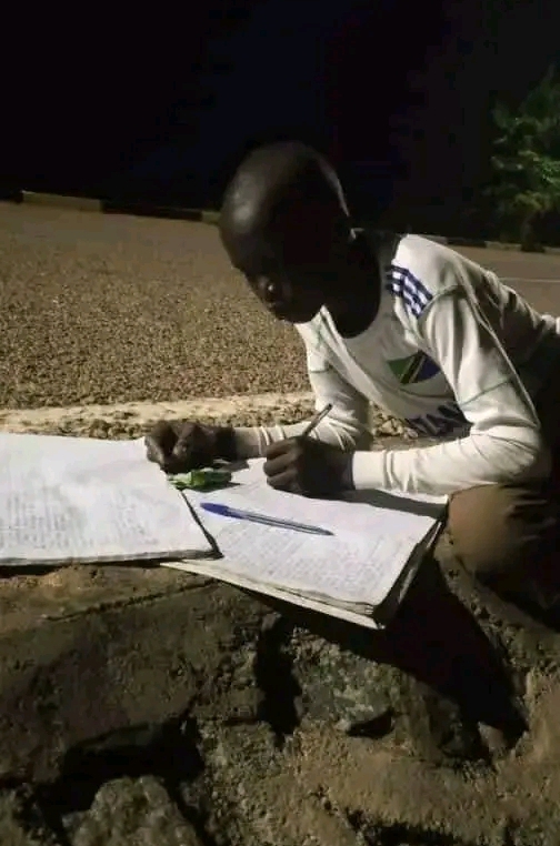 Despite his parents inabilities to avail him with light to read, the young boy exhibited his zeal towards education and could come to revise his notes under the streetlights by the roadside at night hours because his family couldn't afford to aquire lights at home.
