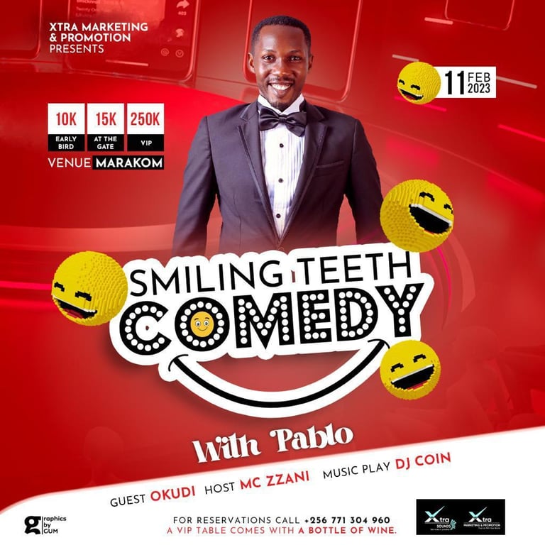 Meanwhile, the self-proclaimed Mc Zzani of Xtra Sounds Marketing & Promotions articulated fans to jubilate since another biggest brand (Xtra Sounds Marketing & promotions) is on ground to cater for your biggest events & talents promotions as you can contact the following numbers for your bookings, talent exposures & event promotions: +256771304960/+256762066443. He urged that fans should get ready for, yet another top event dubbed “SMILING TEEH COMMEDY” where commedia Pablo will be live in Adjumani at Marakom Launch on this Saturday 11th.Feb.2023.