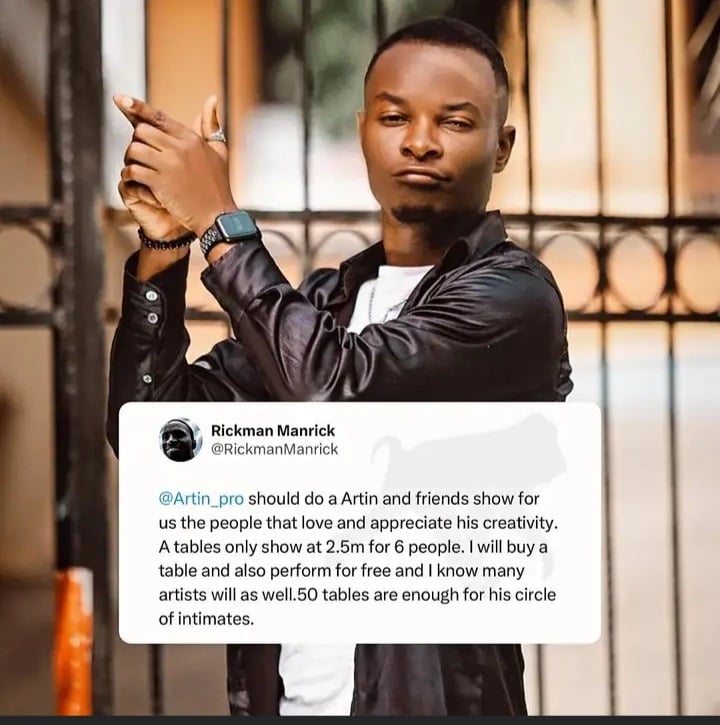 Musician Rickman Manrick has also brought forward an idea to host an event in honour of Artin,pledging 2.5 million in cash and additionally offering a free performance.
