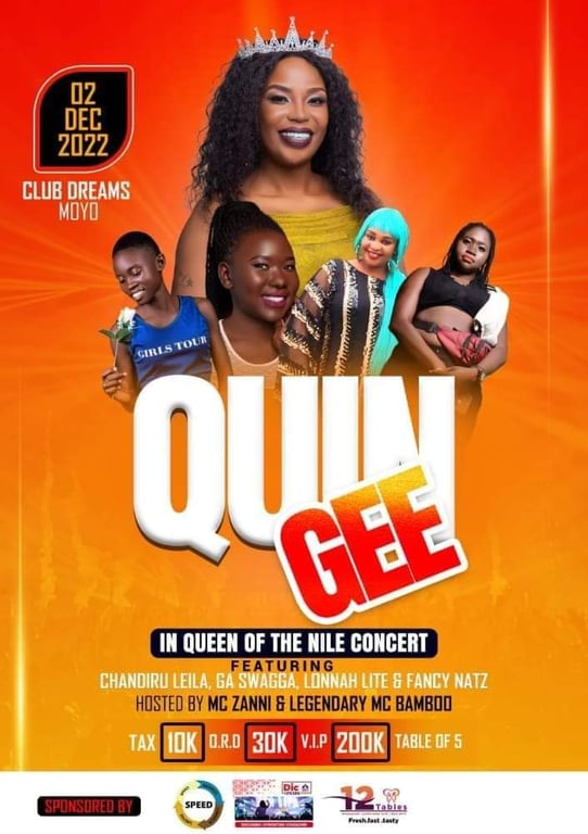 The Management of DIC Events are counting extremely huge losses after the flop of the Nile of the Queen Concert of Quin G. This event took place yesternyt on the 02/12/2022 at Dreamz Club Moyo. The show was meant to be performed alongside Legendary Chandiru Leila of Emgbeleke hit maker, Fancy Nutts, GA Swagger & Lonna Lite. Gate pass was 10k Ordinary, 30K & Table of Five@ 150k.