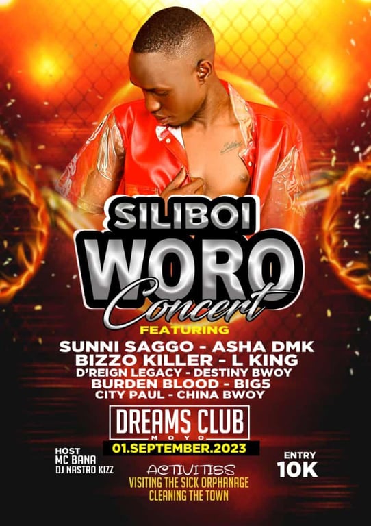 The concert named after Siliboi's recently released classic music video Woro that has received a very tremendous reception on YouTube has a full line up of vibrant Performers inclusive of Sunni Saggo, the Original singer Asha DMK, Bizzo killer, L. King, Destiny Bwoy, City Paul among others.