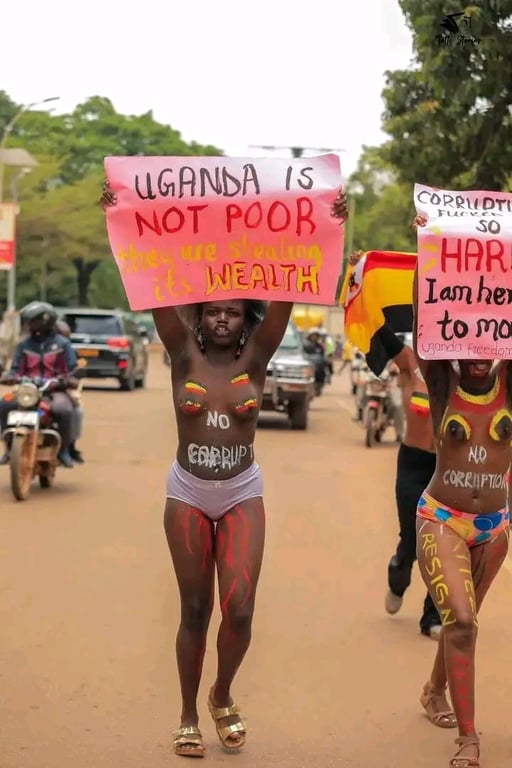 The Half naked protesters 𝐍𝐨𝐫𝐚𝐡 𝐤𝐨𝐛𝐮𝐬𝐢𝐧𝐠𝐲𝐞, 𝐩𝐫𝐚𝐢𝐬𝐞 𝐀𝐥𝐨𝐤𝐢𝐧 𝐨𝐩𝐨𝐥𝐨𝐣𝐞 & 𝐤𝐞𝐦𝐢𝐭𝐨𝐦𝐚 𝐤𝐲𝐞𝐧𝐳𝐢𝐛𝐨 who were protesting against the daily escalating corruption in Uganda were charged by Buganda road chief magistrate Mr 𝐑𝐨𝐧𝐚𝐥𝐝 𝐤𝐚𝐲𝐢𝐢𝐳𝐢 for the offence of “𝐂𝐨𝐦𝐦𝐨𝐧 𝐧𝐮𝐢𝐬𝐚𝐧𝐜𝐞”